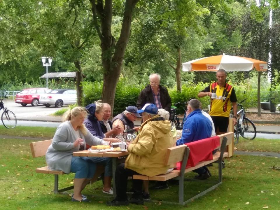 Trotz Regenwetters wurde die von Torsten Zarp und Peter Ehlers ausgearbeitete knapp 30 km lange Strecke abgefahren. In Wendtorf wurde Kaffeepause am Kurpark gemacht, bevor es zurück nach Schönberg ging.