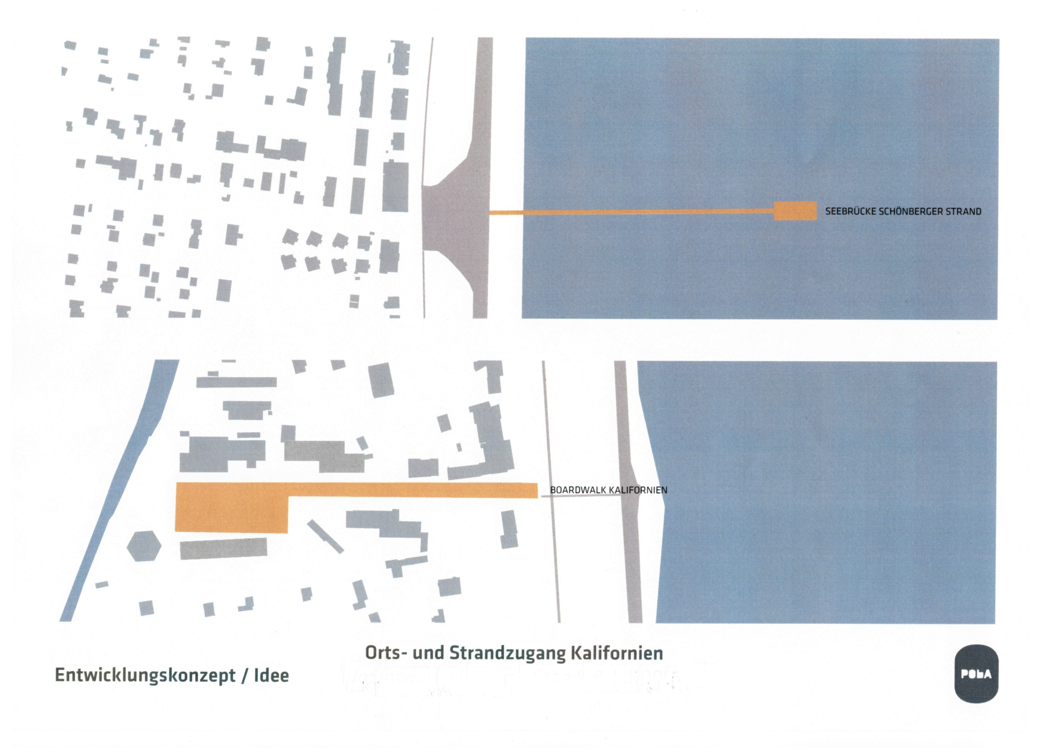 Die Gestaltung der Eingangsbereiche in den Strandgebieten Kalifornien und Schönberger Strand sind seit Jahren Thema bei den Bürgern, Gästen und in den gemeindlichen Gremien. Es gab schon einige Vorschläge, die aber bis heute nicht umgesetzt wurden. Im Rahmen des Ortsentwicklungs- und Tourismuskonzeptes "Schönberg 2030" wird nun das Thema der Eingangsbereiche wieder aufgegriffen. In Zusammenarbeit mit dem Planungsbüro „POLA Landschaftsarchitekten“ wurde im Oktober die erste Vision einer Neugestaltung des Eingangsbereichs Kalifornien vorgestellt.