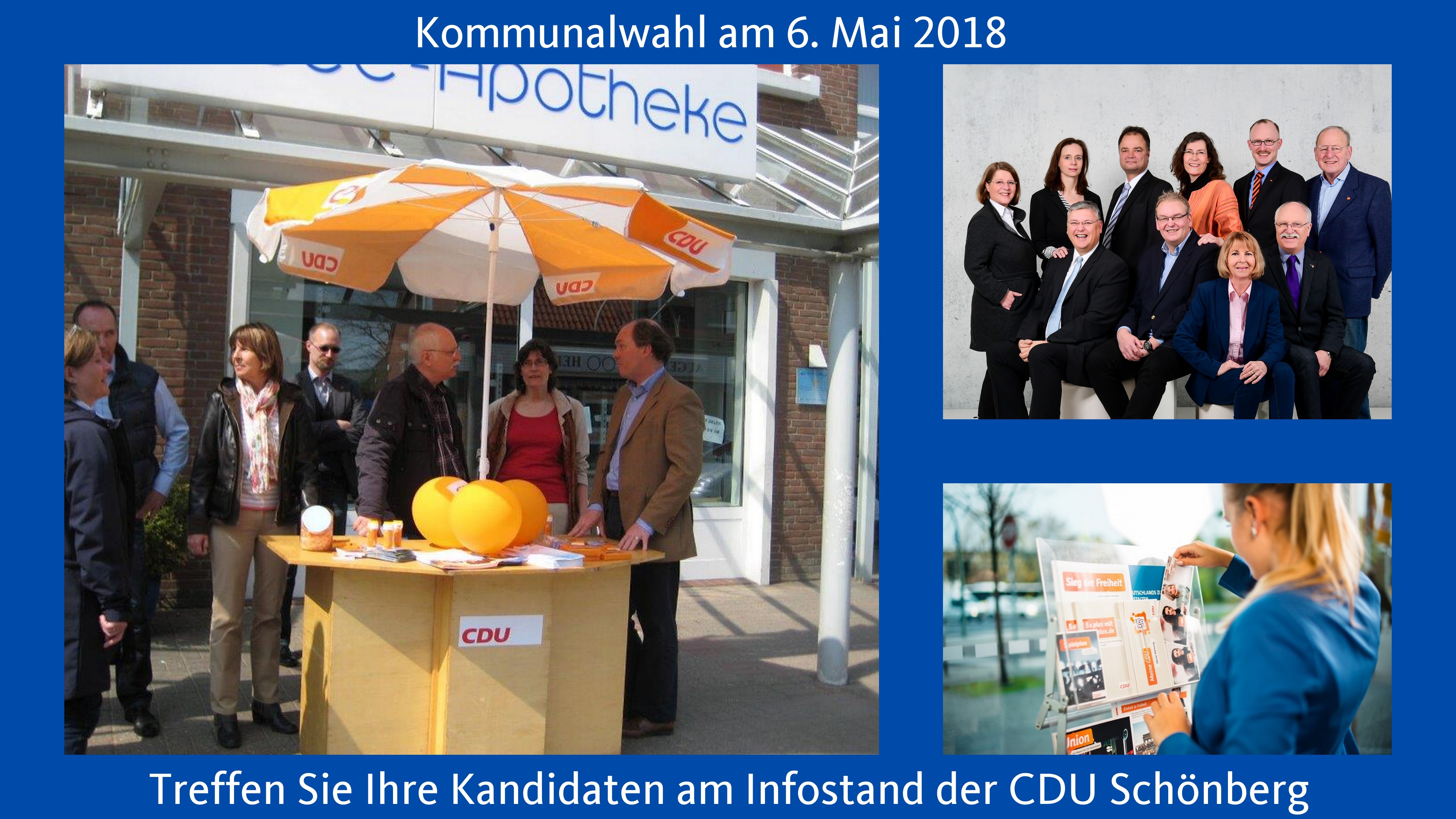Am 6. Mai sind Kommunalwahlen. Treffen Sie Ihre Kandidaten vor dem Sky-Markt, vor EDEKA Alpen und bei Bäcker Glüsing im Eichkamp: Lernen Sie uns kennen und informieren Sie sich über unser Wahlprogramm für Schönberg.